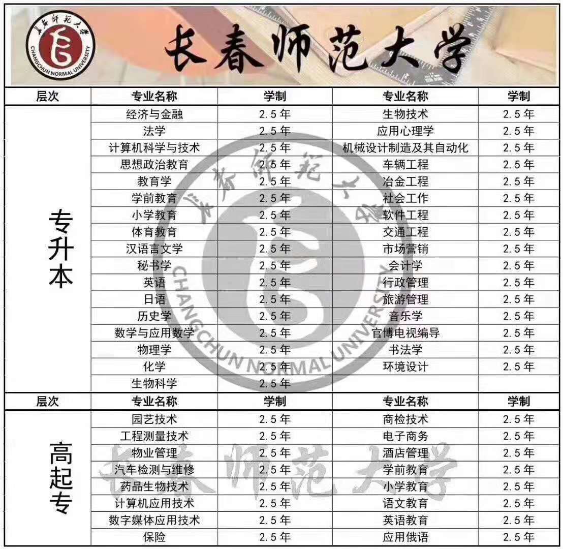 長春師范大學成人高考招生簡章